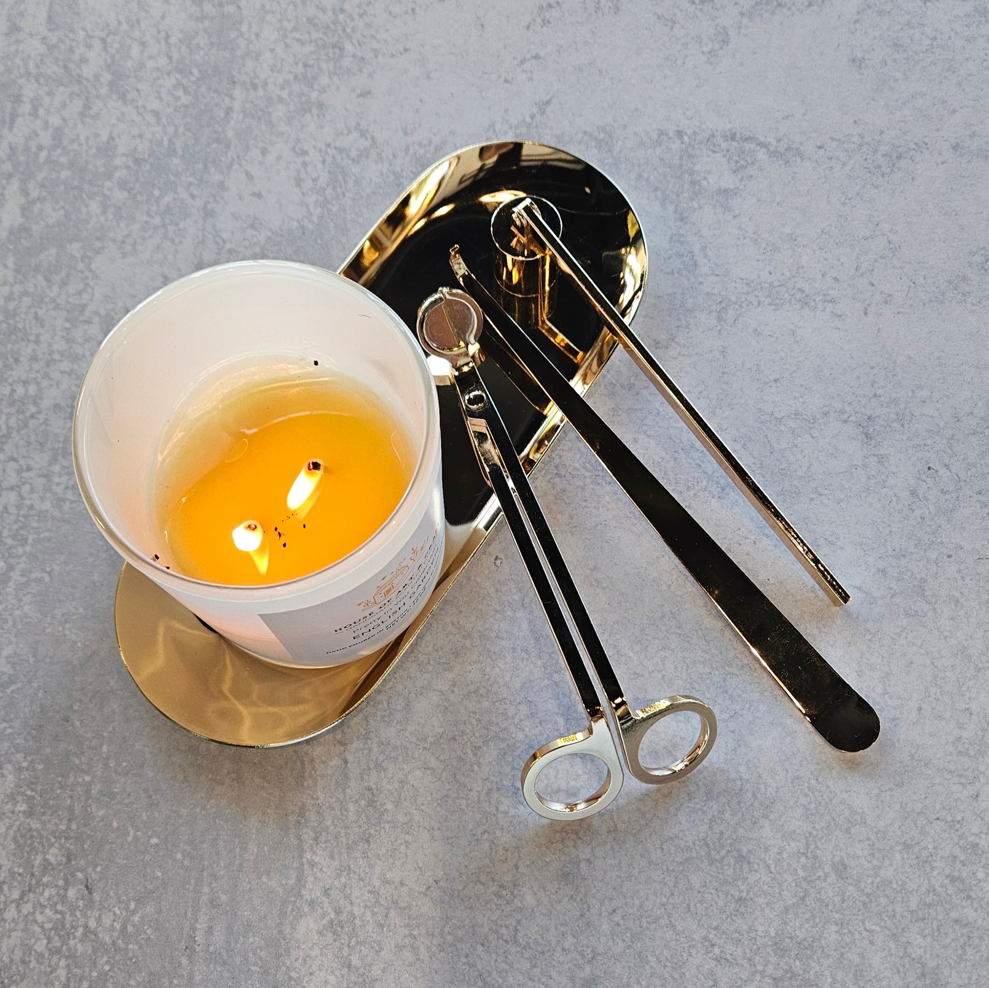 Elevate your candle game with the Candle Wick Trimmer. Made for true candle lovers, this set includes all you need to take care of your cotton and woodwick candles.Comes in a lovely muslin bag Perfect as a gift for yourself or a loved one to enhance the candle burning experience.
