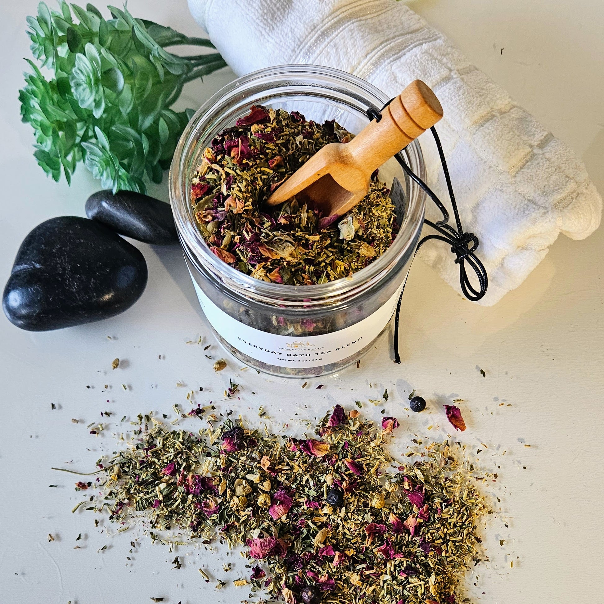 The benefit of taking a herbal tea bath is to feel beautiful and relaxed. With this lightly scented smell of blended herbal teas, you are bound to fall in love with taking baths. This bath soak has no oils or fragrance, but the herbs have a natural scent. So go ahead light your favorite candle, sip your wine and enjoy a luxurious bath that you well enough deserve.