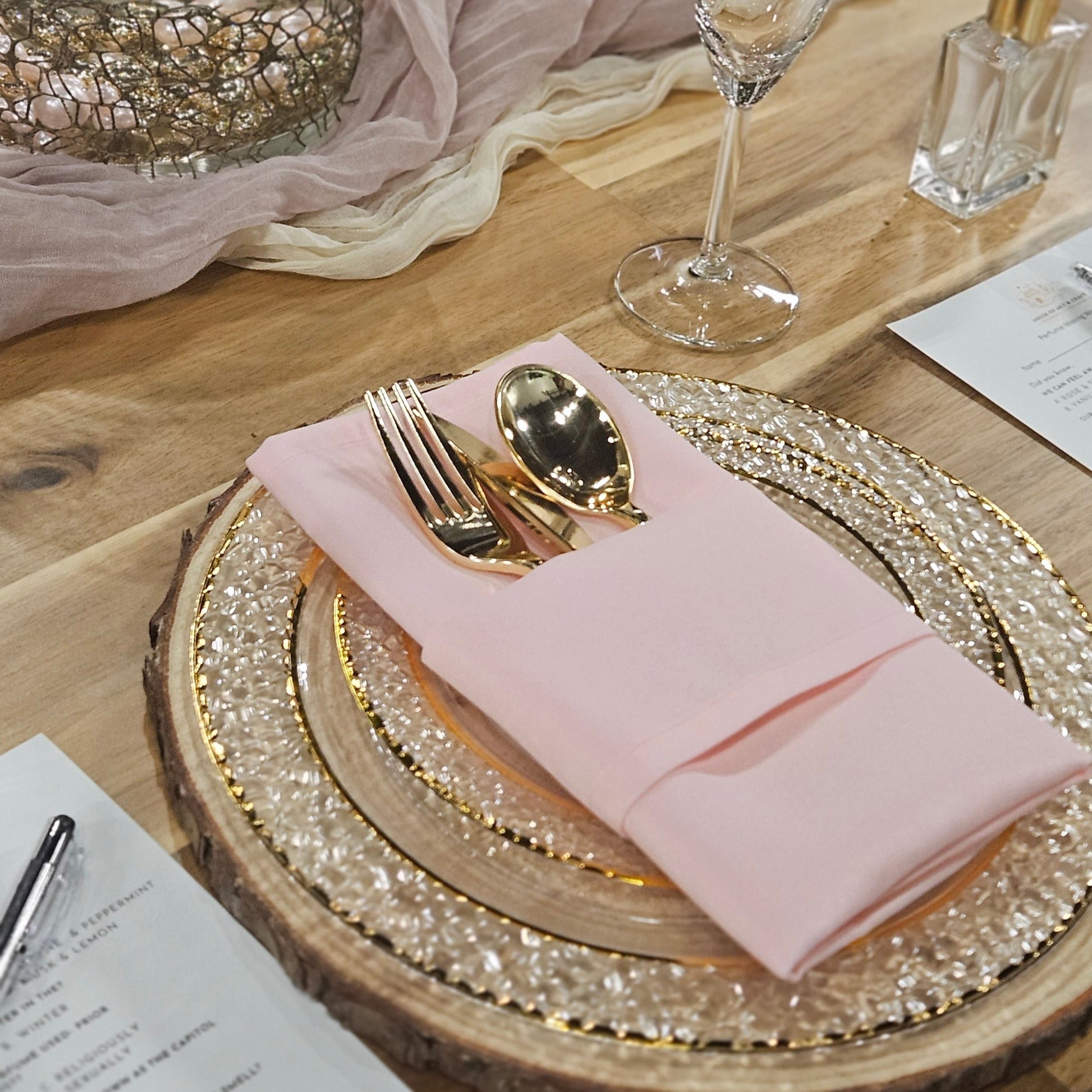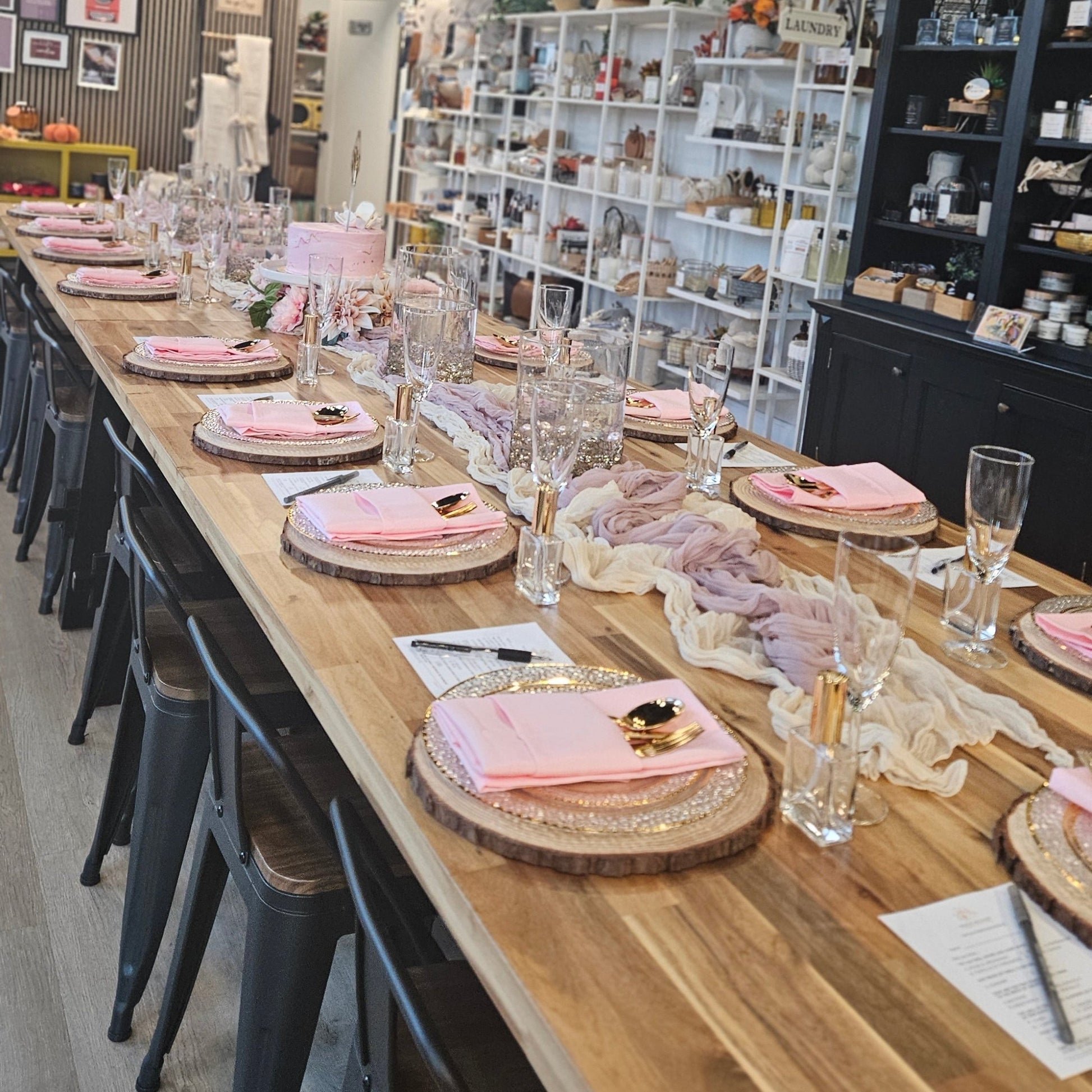 Let us transform your gathering with a personalized guest table setup for the perfect ambiance. Our decor options include elegant plate settings, fun linens, and captivating centerpieces, making your event truly one-of-a-kind. Use the dropdown menu to add this service to your experience.